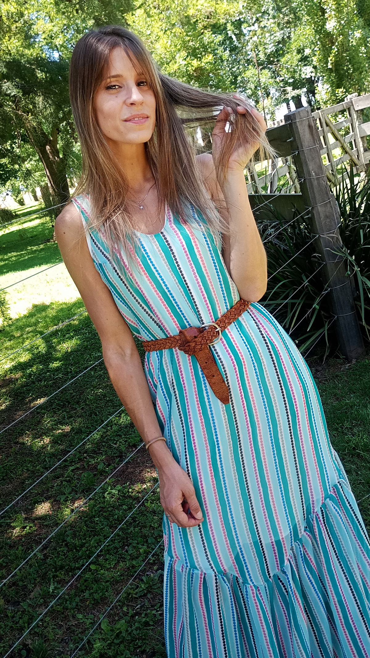 Vestido largo con volado de frunce inferior dispuesto en V. Tipo musculosa, con escote en V delantero y espalda. Pinza de busto. Textil gasa traslucida y forrería interna unida, en color blanco.